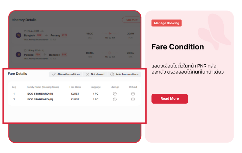 สำหรับตั๋วที่ออกแล้ว (Ticketed) ช่วยให้ตรวจสอบเงื่อนไขได้รวดเร็ว